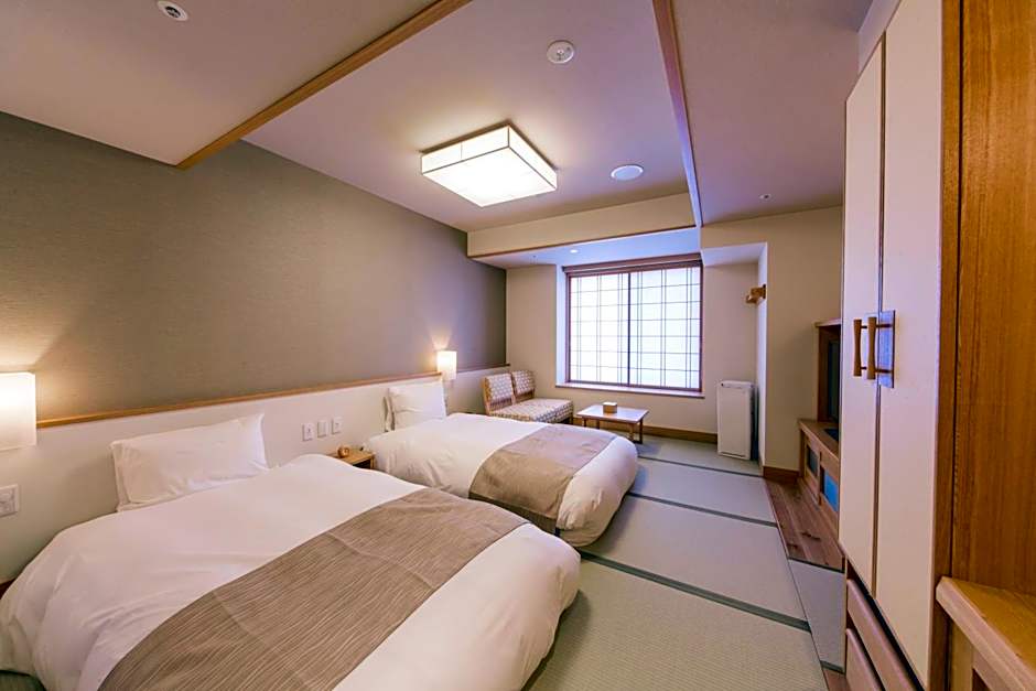 The spacious twin room features air conditioning, tatami, as well as a private bathroom boasting a bath and a shower. This twin room has an electric kettle, pajamas and a flat-screen TV. The unit has 3 beds.